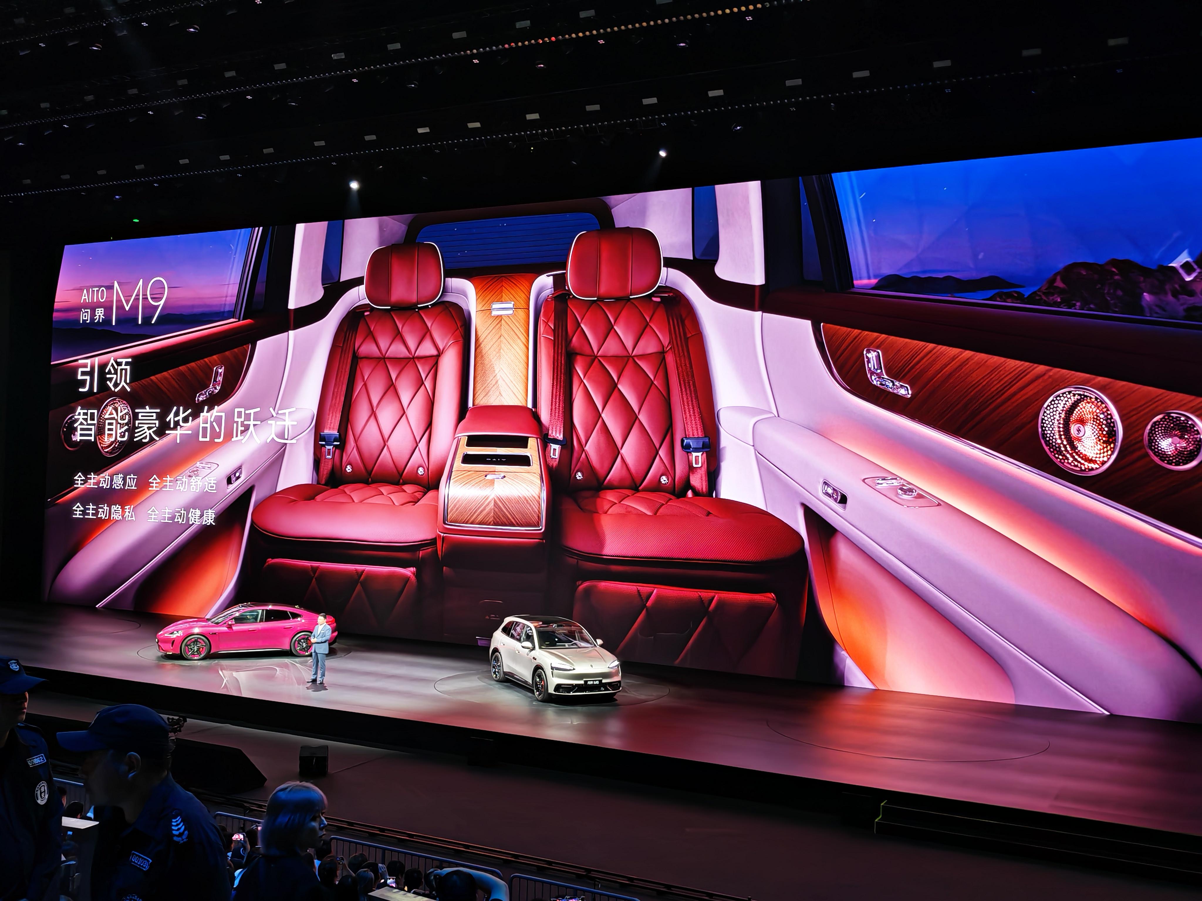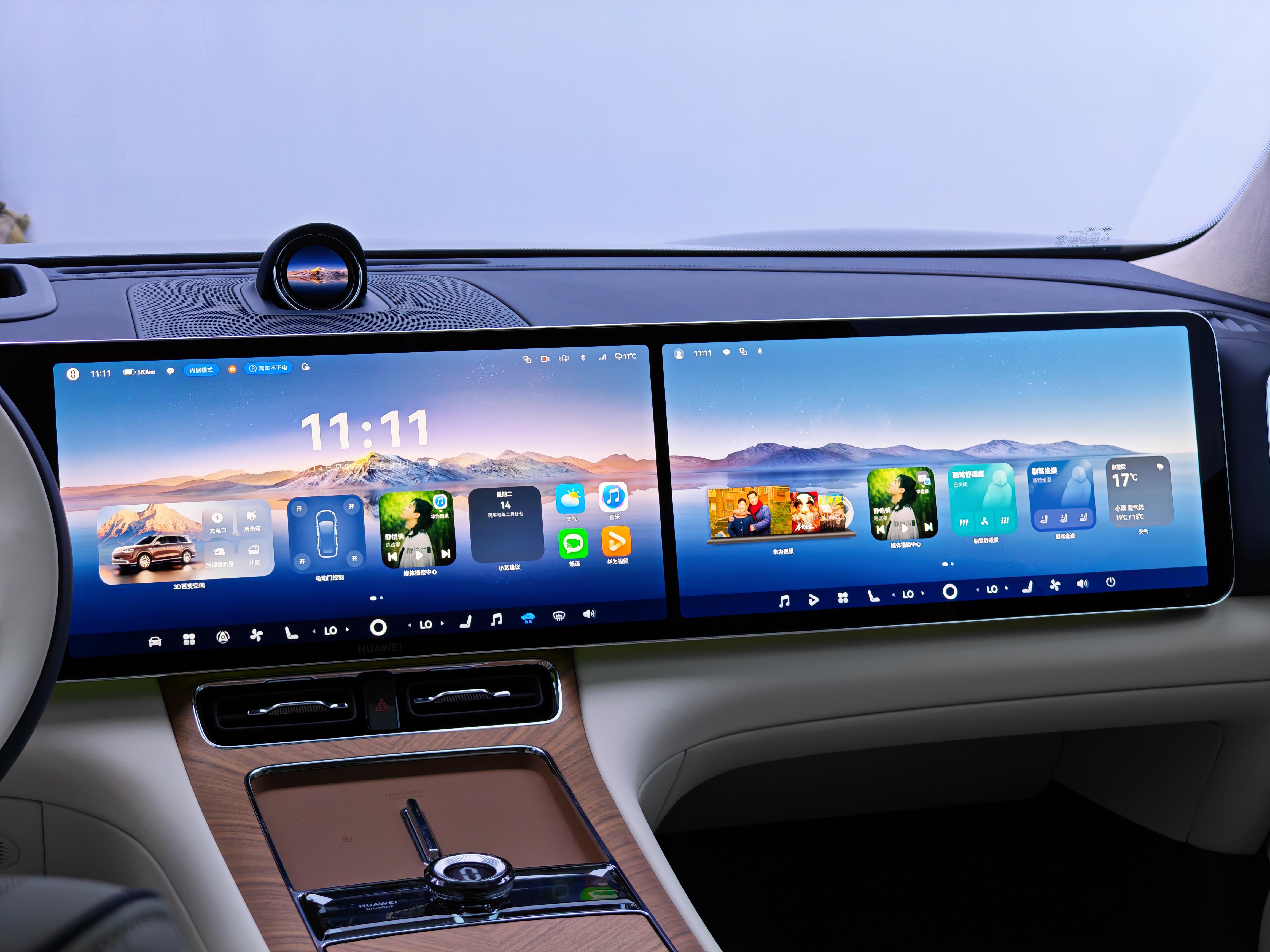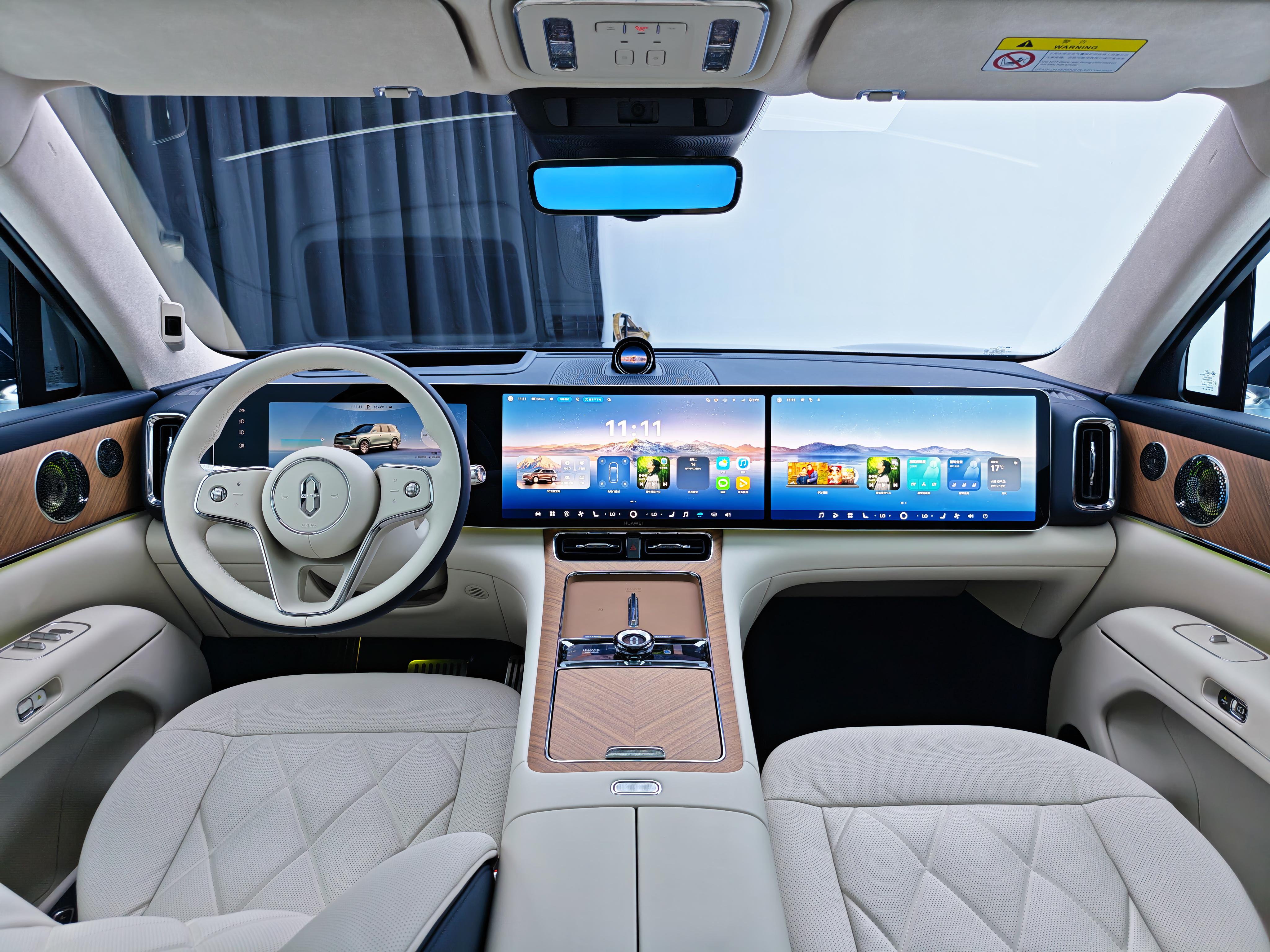 中控区域升级为全新环宇三联屏,搭载21:10窄边框超宽3K主屏及双17.2寸大屏,配合双焦面AR-HUD,能够实现2D与3D视觉融合,视觉体验大幅提升。影音娱乐方面,新车配备全新一代HUAWEI XSCENE智能激光投影系统,拥有1100lm光通量与2K分辨率,并首发HUAWEI SOUND Ultimate非凡系列音响系统。该系统采用9.5.4声学设计,在线观看+亚洲全车布置高达39个扬声器,含16个头枕扬声器,功放输出达2920W,并配备独创的磐石门低音单元。
