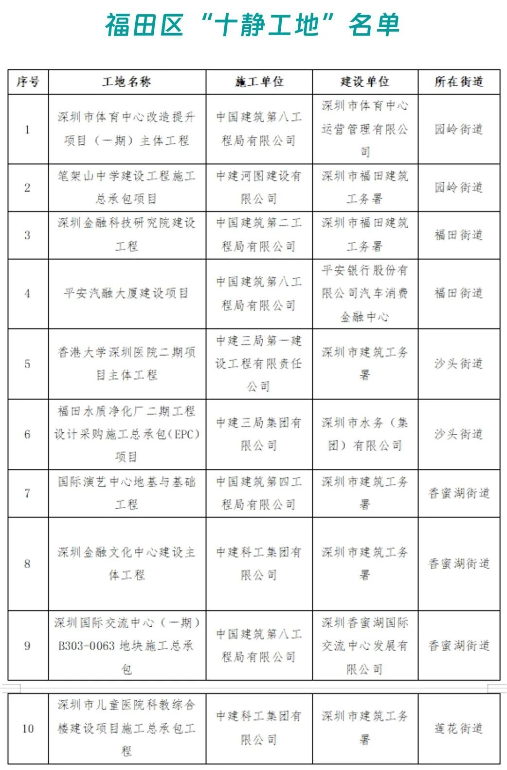 深圳市生态环境局福田管理局负责人表示,名单既表彰先进,也曝光落后,希望营造争先创优的良好氛围,并要求扬尘、噪声防治不达标的工地自查自纠,督促立行立改,严防问题反弹。